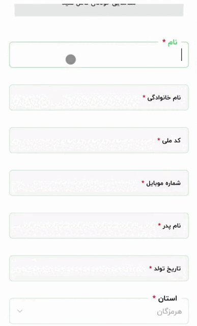 تکمیل فرم مشخصات از قبیل نام، نام خانوادگی و شمارهی تلفن